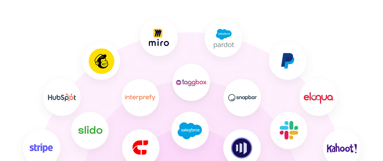 Native integrations, not Zapier. Drive end to end workflows with out of the box integrations to your favourite sales and martech tools to run events that drive revenue.